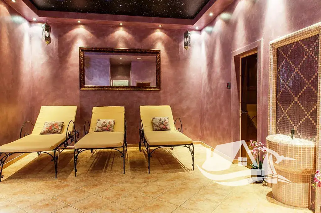 • luxusní SPA centrum: sauna, parní lázeň, šokové vědro, masážní místnost,