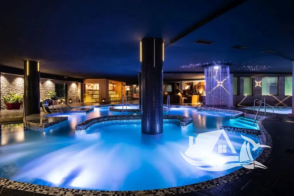 Grand Hotel Sveti Vlas, známý také jako Pulse Fitness & Spa, patří mezi nejprestižnější komplexy v této části pobřeží. Rezidenti mají k dispozici venkovní i vnitřní bazén, špičkové fitness centrum s profesionálním vybavením, rozsáhlé spa se saunami, parními lázněmi, hammamem a relaxačními zónami. Součástí komplexu jsou restaurace, bary, upravené zahrady, dětský koutek, parkování, recepce a nepřetržitá ostraha. Poplatek za údržbu činí 22 € za - m² ročně a zahrnuje kompletní péči o areál i služby hotelového standardu.
