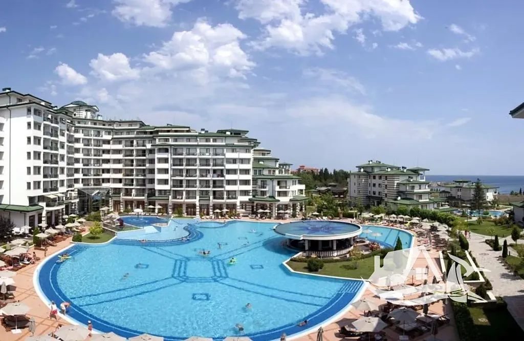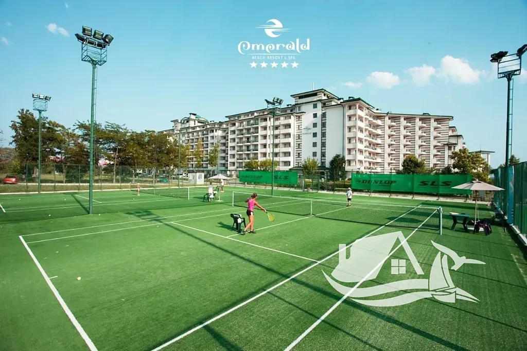 Emerald Beach Resort & Spa patří mezi výjimečné komplexy na bulharském pobřeží. Jde o jeden z mála resortů, který nabízí krytý bazén a celoročně fungující SPA centrum. Rezidenti mají k dispozici tři venkovní bazény, jeden vnitřní bazén o rozloze 200 - m², vířivku, saunu, tureckou lázeň, fitness centrum, dva tenisové kurty, plážový volejbal, dětské hřiště a animační zónu, restaurace, lobby bar, recepci, ostrahu a parkování zdarma. Celý areál působí upraveně, klidně a nabízí komfort srovnatelný s kvalitním hotelovým zázemím.