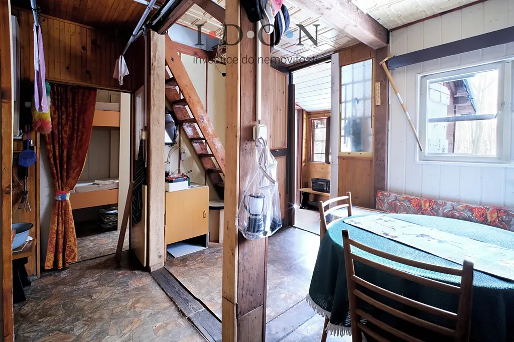 Nabízíme Vám ke koupi chatičku v obci Kyjovice. Chata se nachází v lesním porostu, samostatně stojící. V kontrastu se soukromím je bezproblémový dojezd osobním vozidlem, dostupnost i MHD, zastávka tramvaje se nachází cca 200m a autobusu cca 150m od nemovitosti. Chata je dřevěné konstrukce, v dolní části se nachází společenská místnost rozdělená na dvě části, v 1. patře se nachází dvě oddělené místnosti ke spaní a odpočinku. Na pozemku vybudován vrt na vodu. Elektřina není zavedena, řešeno elektrocentrálou. Současní majitelé již nevyužívají a chtějí najít nového majitele, který zde bude trávit volné chvíle a vdechne nemovitosti nový život. Na pozemku je suché WC. U chaty je vybudováno zastřešené posezení s grilem, které už zažilo mnoho rodinných oslav a setkání. Příjezdová štěrková komunikace je zpevněná, dostupnost nemovitosti osobním autem bez problémů. Umístění uprostřed lesních pozemků je ideální tím, že po otevření branky jste po třech krocích v lese a můžete plnit košík houbami. Bez úprav není celoročně dlouhodobě obyvatelná, krátkodobé pobyty v rámci rodinných akcí možné. Budeme se těšit na prohlídku.