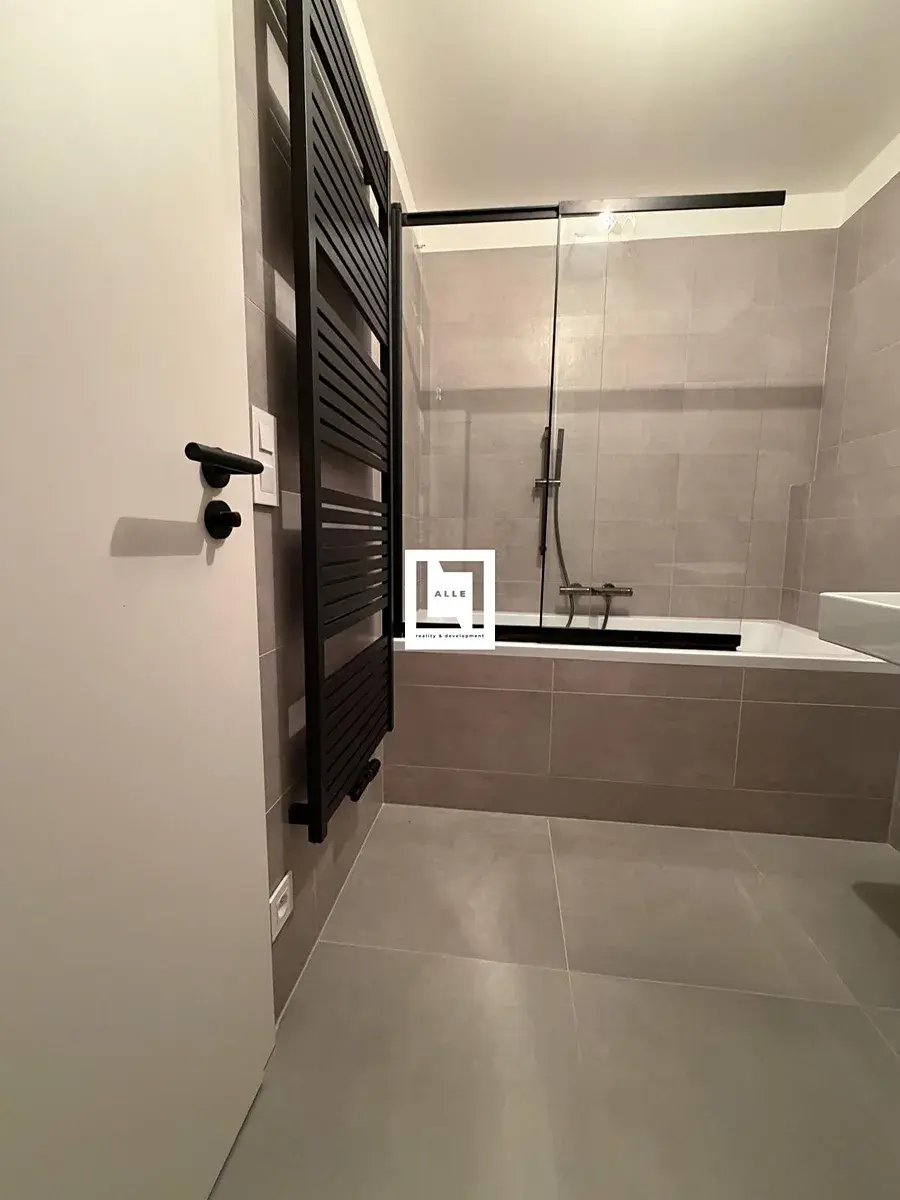 K prodeji Vám exkluzivně nabízíme byt v oblíbené novostavbě – Rezidence Svratka v Brně. Rezidence – etapa B je nově zkolaudovaný developerský projekt nacházející se v katastrálním území Horní Heršpice. Byt o dispozici 2+kk je situovaný v posledním (7.NP) budovy. Na patře se nachází pouze 4 bytové jednotky. Byt má výměru 53,5 m2 s terasou 11 m2. Přes prostornou chodbu se samostatnou šatnou vstupujete do obývacího pokoje s přípravou pro kuchyňskou linkou. Ložnice má 14,2 m2. Z obou neprůchozích pokojů je výstup na prosluněnou terasu příjemné výměry. V koupelně naleznete vanu se zástěnou, umyvadlo, přívod pro pračku a sušičku. Toaleta je umístěna samostatně. Byt je nádherně prosluněný a působí vzdušně díky velkým oknům. Standardy bytu byly v rámci klientských změn doplněny o kvalitní vinylové podlahy, designové baterie a sprchovou zástěnu. V obou pokojích naleznete jednotku klimatizace. K bytu náleží jedno vyhrazené parkovací stání v garáži přímo pod bytem + sklep. Uvedená cena nezahrnuje garážové parkovací místo, které je k dokoupení.