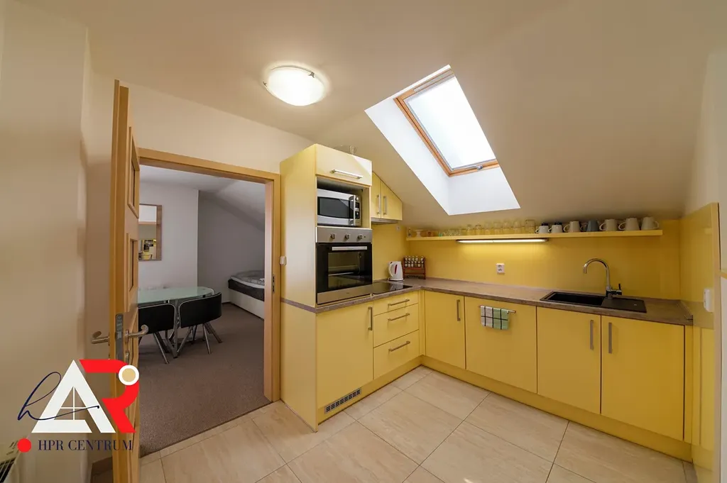 3. NP: prostorný apartmán s kuchyní, obývacím pokojem, koupelnou s WC, ložnicí, balkonem a terasou
