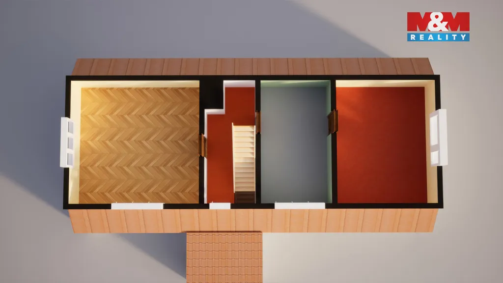 Ve 2 NP se nachází klidová část v podobě 3 pokojů.