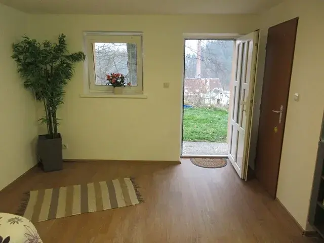 Byt se samostatným vstupem v přízemí domu a s přímým vstupem na zahradu o výměře 21 m2.