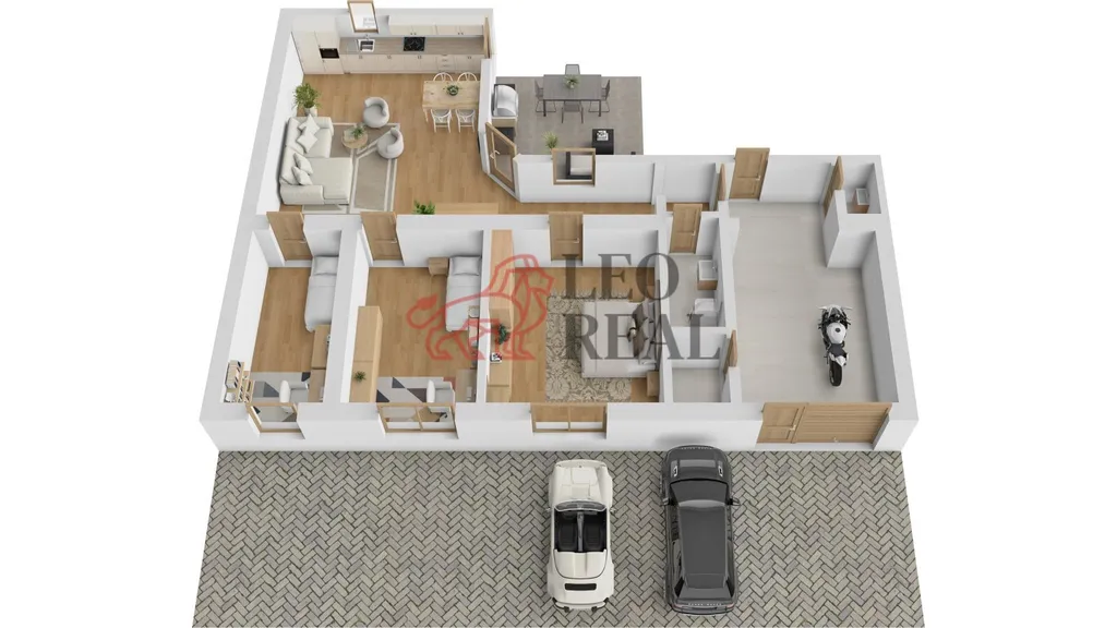 Dům je řešen zcela bez bariér, vše na jedné úrovni, bez jediného schodu. Je vhodný pro rodinu, pár, případně seniory, kteří hledají pohodlné a klidné bydlení.
