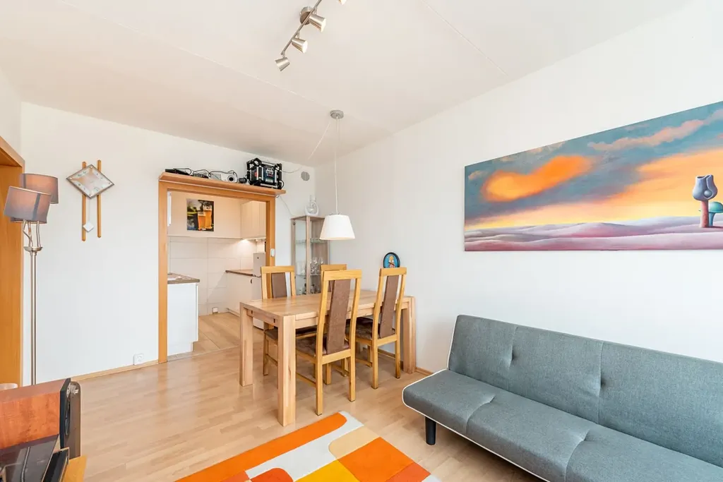5 minut pěší chůze od metra Háje a přitom v těsné blízkosti parků a rybníků nabízíme k pronájmu byt 2+kk.