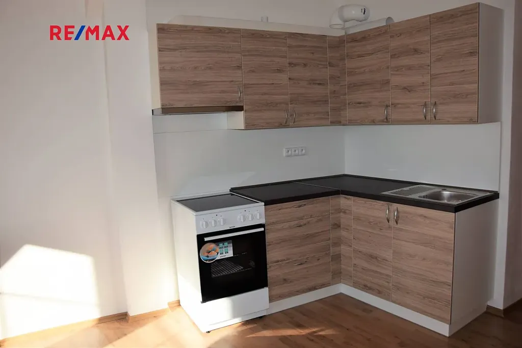 Kuchyňský kout je vybaven kvalitní kuchyňskou linkou s elektrickým sporákem. Jinak se byt pronajímá nezařízený.