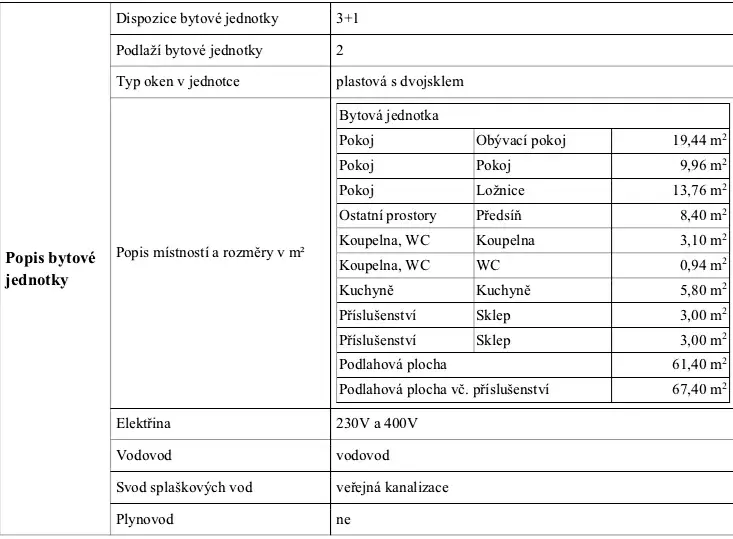 Bytová jednotka rozměry: