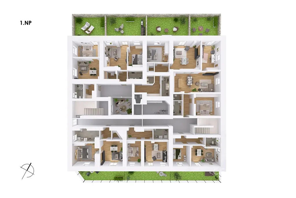 ✔ Parkovací stání a možnost garáží přímo v areálu