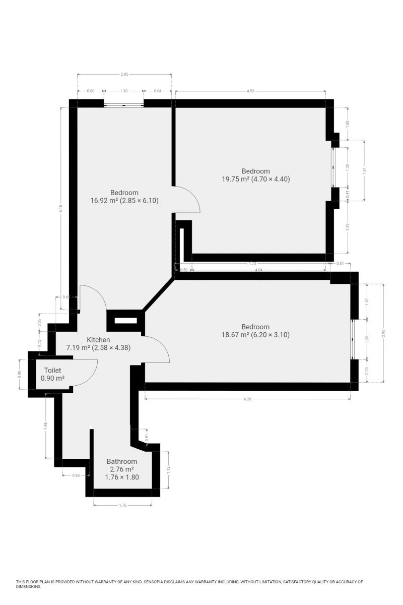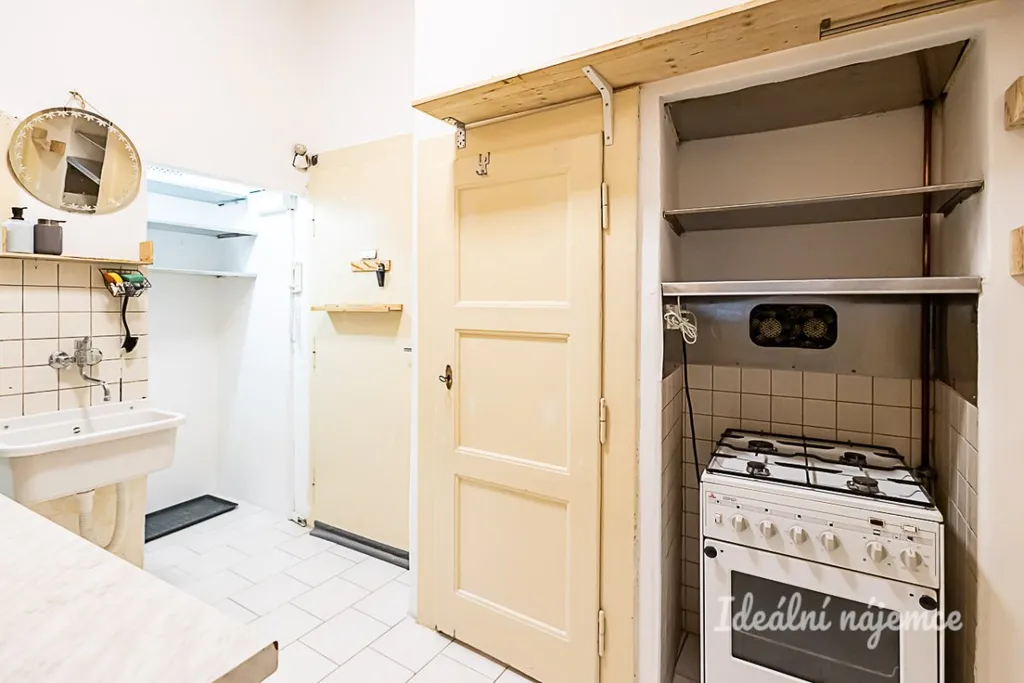 Byt se nabízí volný k zařízení dle vlastních představ. Kuchyně disponuje kuchyňskou linkou, umyvadlem a kombinovaným sporákem. Dva pokoje jsou nezařízené, ve třetím je spací patro a skříně. V koupelně je vana, umyvadlo a koupelnová skříňka. WC je umístěno samostatně.