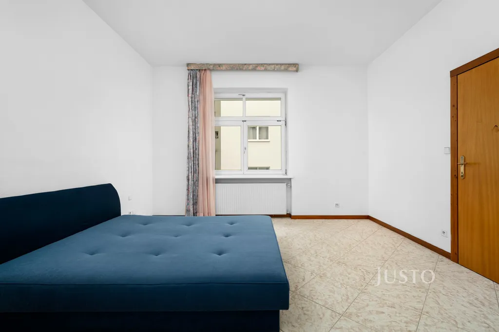 Byt je situován ve 3. nadzemním podlaží zrekonstruovaného cihlového domu. Dispozice bytu nabízí prostorný pokoj s částečným vybavením – k dispozici je pohodlná postel a dostatek prostoru pro další zařízení dle vašich představ. Kuchyně je vybavena moderní kuchyňskou linkou na míru, jídelním stolem, lednicí, mrazákem, myčkou, plynovou varnou deskou, troubou a nechybí ani pračka.