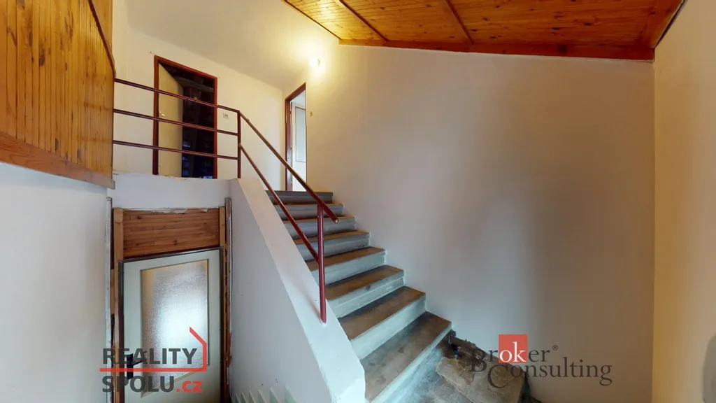 V přízemí domu je prostorná kuchyň, jeden velký pokoj a dva menší pokoje orientované do zahrady. Zároveň je zde malá koupelna se sprchovým koutem. V prvním patře se nachází pokoj s balkonem a vstup na půdu, jejíž dispozice nabízí další prostor pro rozšíření obytných prostor. Dům je celý podsklepený, sklepní prostory poskytují dostatek místa pro skladování, dílnu či hobby zázemí. Celý objekt je v původním stavu a vyžaduje rekonstrukci, což umožňuje budoucímu majiteli vytvořit si domov přesně podle svých představ a standardů. Dům je napojen na veřejný vodovod a obecní kanalizaci. Vytápění je zajištěno plynovým kotlem a ohřev vody průtokovým ohřívačem. Pro inspiraci najdete ve fotogalerii současný a možný budoucí stav obytných místností.