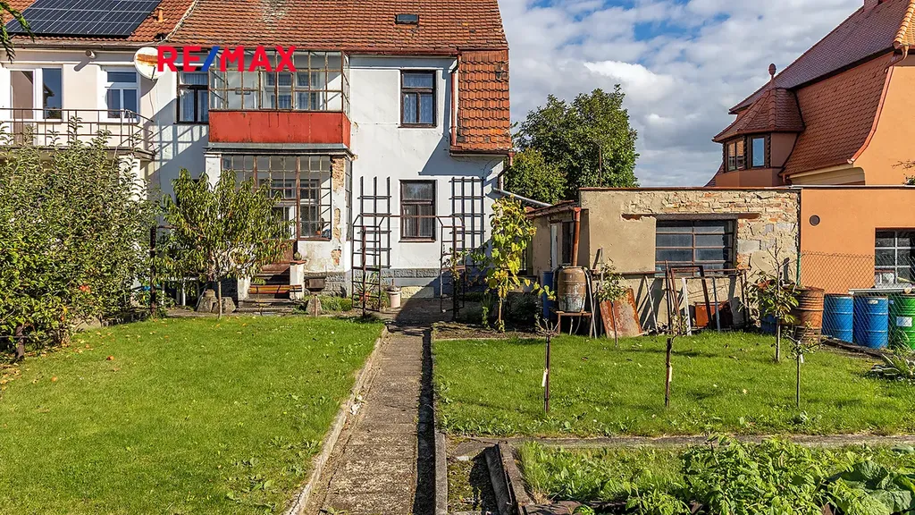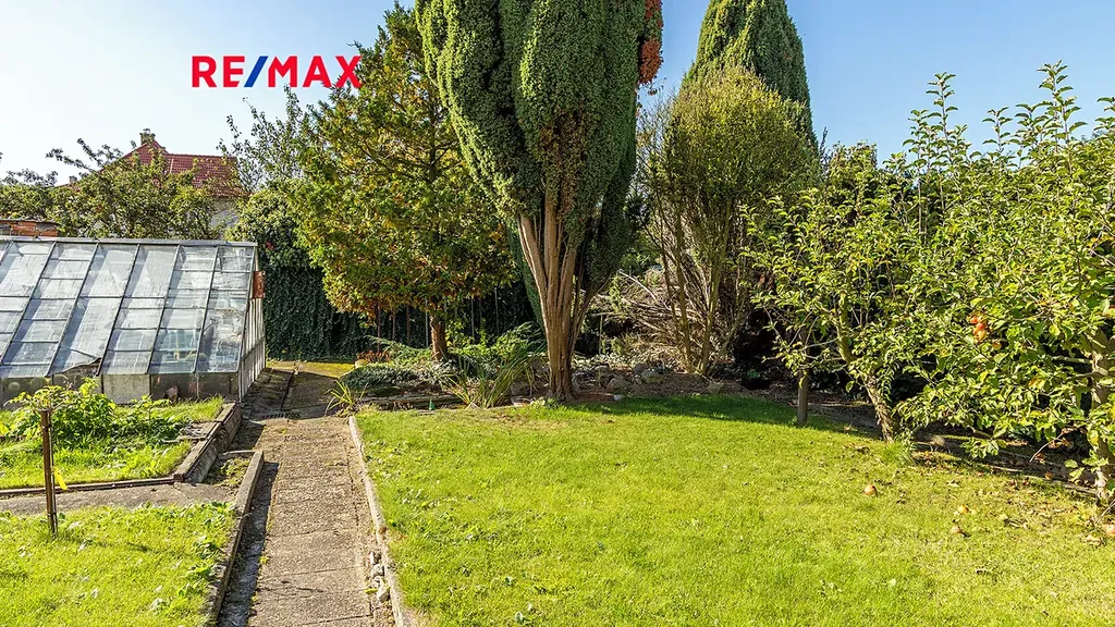 Na zahradě se nachází garáž, skleník, záhony a ovocné stromy, což vytváří příjemné prostředí pro relaxaci i zahradničení.