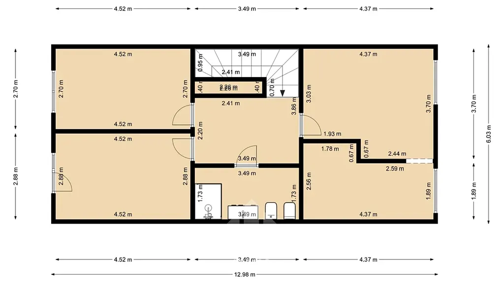 • vstupní zádveří, samostatné WC, kuchyně s jídelnou, prostorný obývací pokoj, lodžie orientovaná na jih
