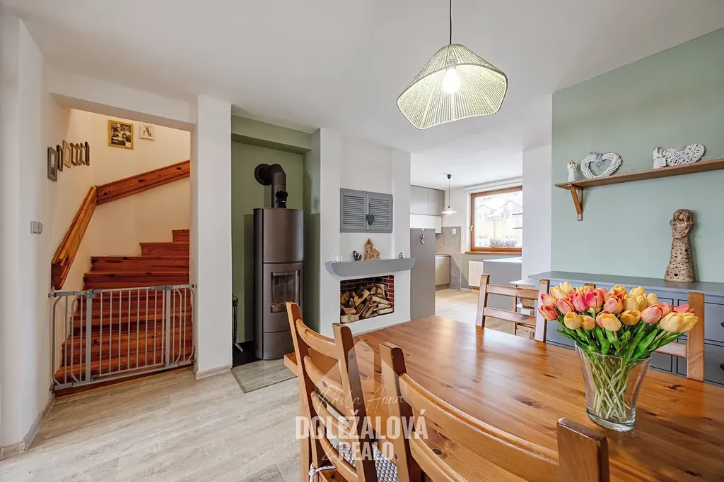 Nabízím k prodeji řadový rodinný dům o dispozici 4+kk s garáží a zahradou. Dům prošel rekonstrukcí, v rámci které byla realizována nová střecha, zateplení, fasáda a instalace solárního ohřevu vody, kuchyň, koupelna. K vytápění slouží plynový kotel. Velkou výhodou jsou solární panely. Náklady na provoz činní Elektřina 1.400 Kč, Plyn 800 Kč, Voda 840 Kč