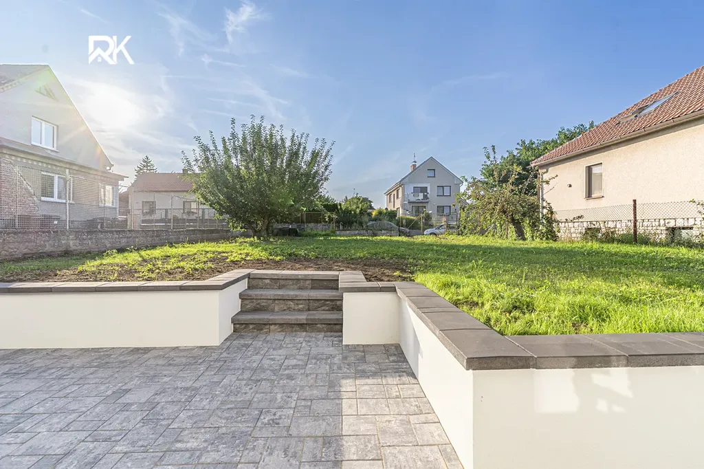 Zahrada 320 m², terasa, parkování na pozemku i před domem. Možnost výstavby garáže nebo dalších doplňkových staveb díky přístupu z obou stran pozemku.