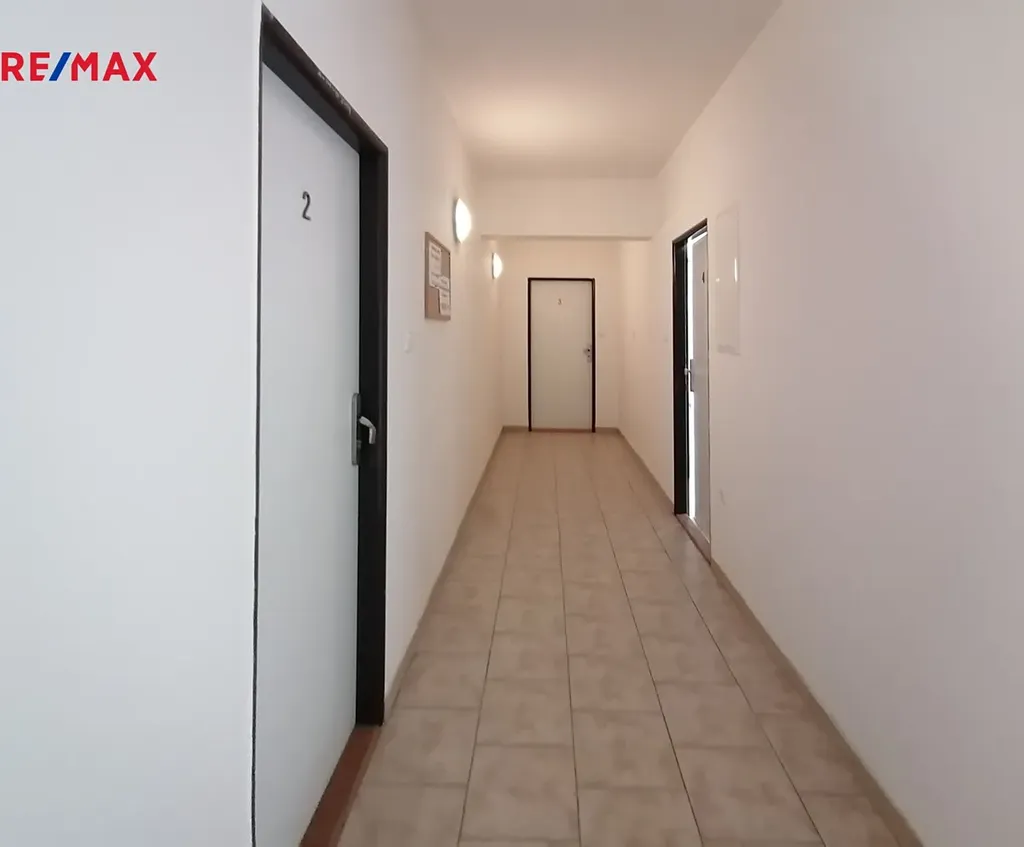 Byt prošel rekonstrukcí, sestává se z předsíně, kuchyně, prostorného sociálního zařízení (koupelny s WC), velkého obývacího pokoje a ložnice.