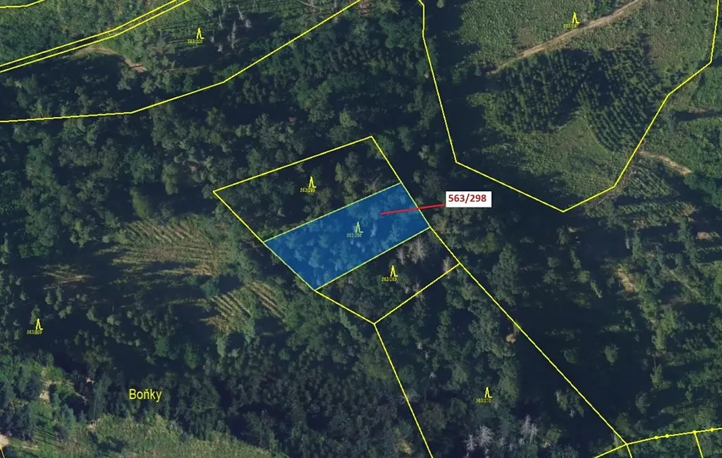 Lesní pozemek o výměře 1372 m2, parcelní číslo 563/298, podíl 1/1, katastrální území Spešov, obec Spešov, obec s rozšířenou působností Blansko, okres Blansko, Jihomoravský kraj.