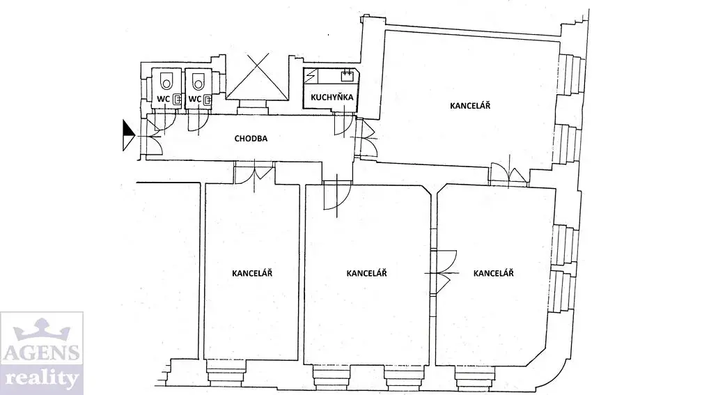 Nabízíme k pronájmu kanceláře o celkové výměře 110m2 v Praze 2, na Fügnerově nám. v blízkosti stanice metra I. P. Pavlova. Nebytový prostor je situovaný ve 3. patře budovy s výtahem a zahrnuje čtyři kanceláře (26, 25, 24 a 17m2), kuchyňku, chodbu a dvě toalety.