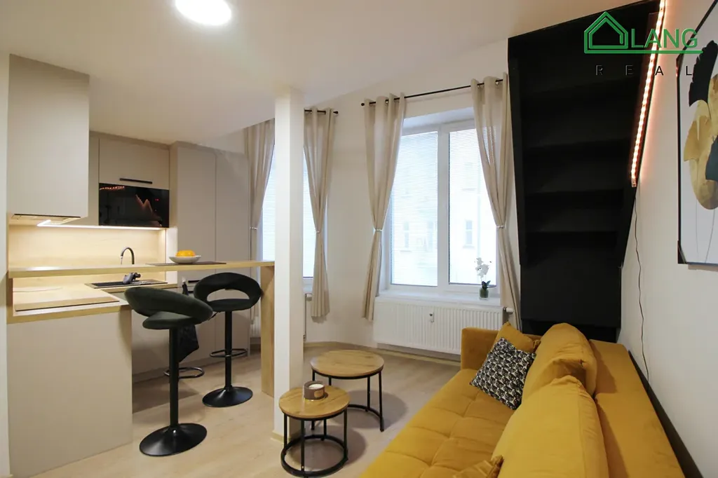 Byt o ploše 37 m² s vestavěnou šatnou a obytným patrem s ložnicí je díky velice důmyslně rozmístění nábytku praktický, útulný a prostorný. Byt je kompletně zařízen nábytkem na míru a je orientován do klidného dvora.