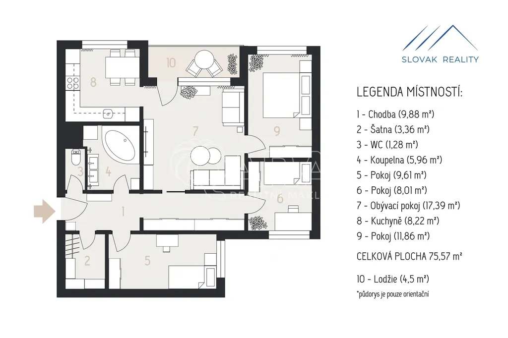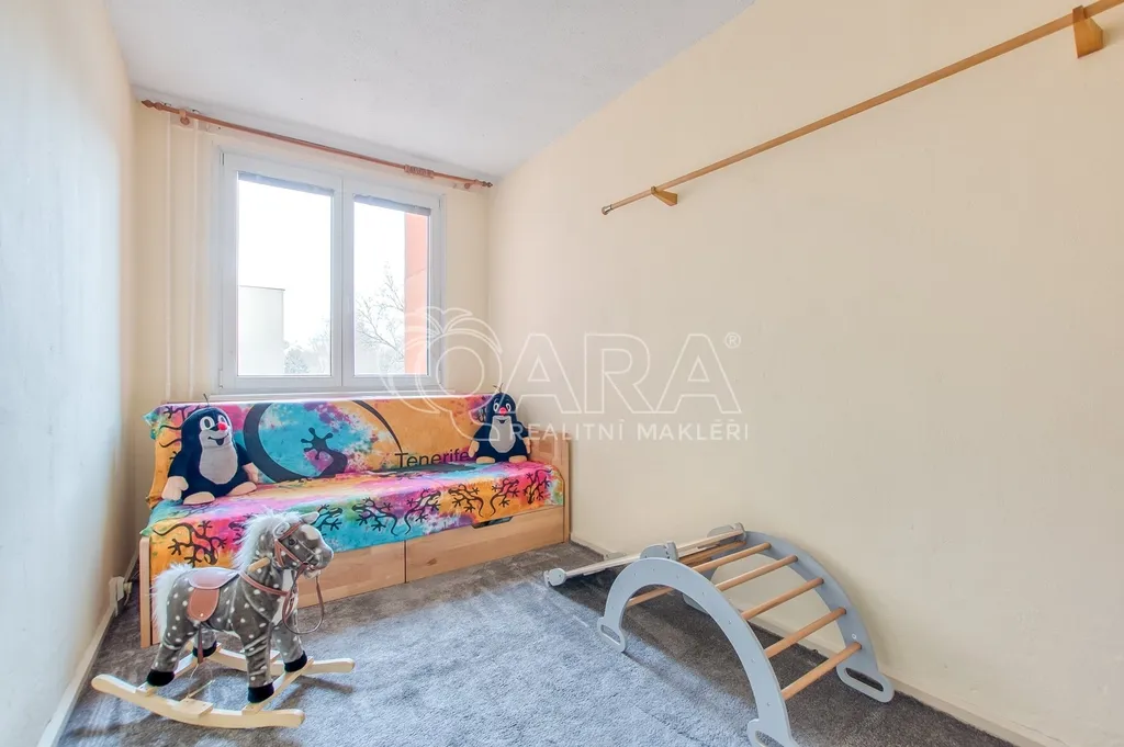 Byt má celkovou užitnou plochu přibližně 80 m² včetně lodžie a nabízí dispozici, která dnes není běžná. Čtyři samostatné pokoje poskytují dostatek prostoru pro rodinné bydlení i pro dlouhodobý pronájem. Orientace na jihozápad zajišťuje dostatek denního světla a příjemné výhledy do okolní krajiny i ze druhého patra domu.