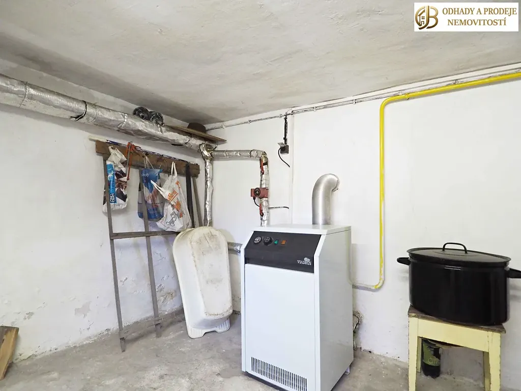 Podsklepení: Garáž s prostorem pro uskladnění zemědělské techniky či dílnu, kotelna s plynovým kotlem, kotelna s kamny na tuhá paliva a další technické zázemí se spoustou úložných prostor.