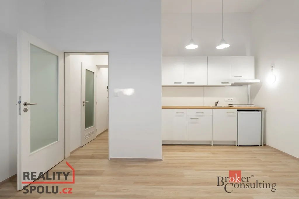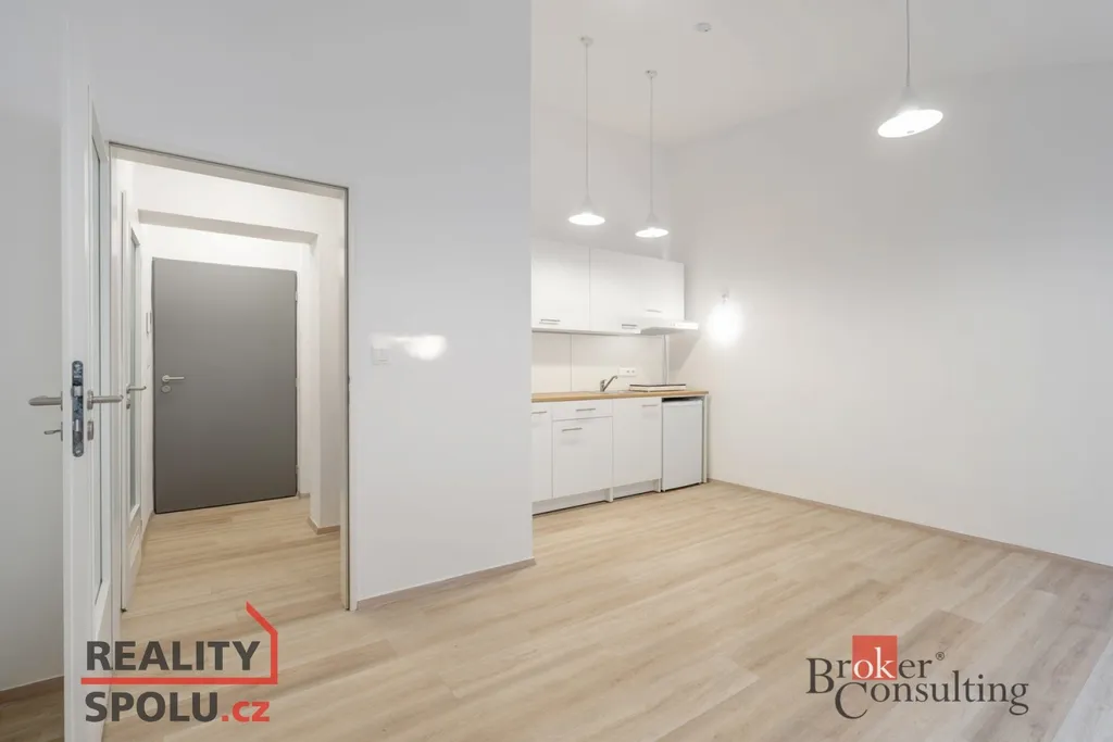 Byt se nachází v 1. nadzemním podlaží bytového domu a má celkovou plochu 26 m². Hned za vstupními dveřmi vás uvítá prostorná předsíň, která plynule přechází do hlavní obytné místnosti s prakticky zařízeným kuchyňským koutem. K dispozici je elektrický dvouplotýnkový vařič a lednice. Koupelna nabízí moderní sprchový kout a toaletu.