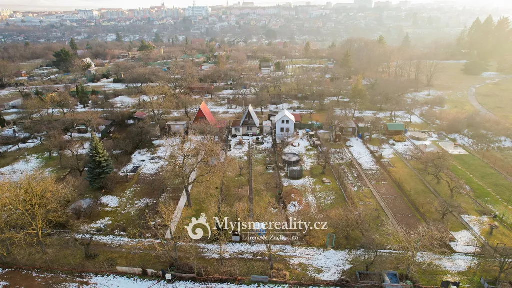 Na pozemku stojí zděná dvoupodlažní chatka o zastavěné ploše 12 m², zapsaná v katastru nemovitostí. Disponuje komínem, v přízemí je místnost s kamny, v podkroví je další ložnice s možností vybudování "spaní" – ideální zázemí pro pobyt během sezóny.