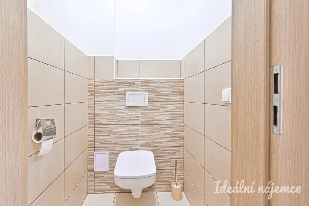Moderní interiér bytu je ve velmi dobrém stavu. Dispozice 3+kk nabízí vzdušný obývací prostor s kuchyňským koutem a dvě samostatné místnosti vhodné jako ložnice, dětský pokoj nebo pracovna. Kuchyně je vybavena kuchyňskou linkou se spotřebiči jako trouba, mikrovlnná trouba, digestoř, lednice a myčka. Zbytek místnosti je zařízen jídelním stolem, TV skříňkou a gaučem. K dispozici je také praktická spíž na úschovu potravin. Ložnice disponuje manželskou postelí s matrací a úložným systémem. Druhá oddělená místnost vybavena malou skříňkou. V koupelně najdeme prostornou vanu, umyvadlo se skříňkou a sprchový kout. Toaleta je oddělená.