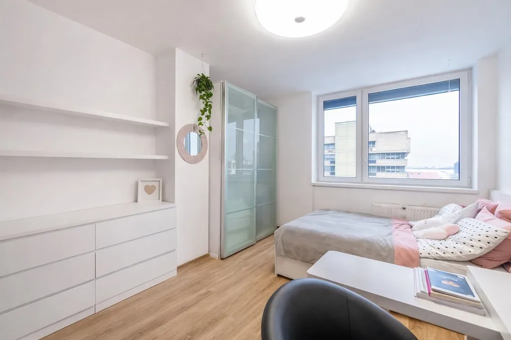 Současný podnájemce si na své náklady nechal v bytě namontovat venkovní žaluzie a vyrobit na míru vestavné skříně. Vše pak zde může po dohodě ponechat k užívání.
