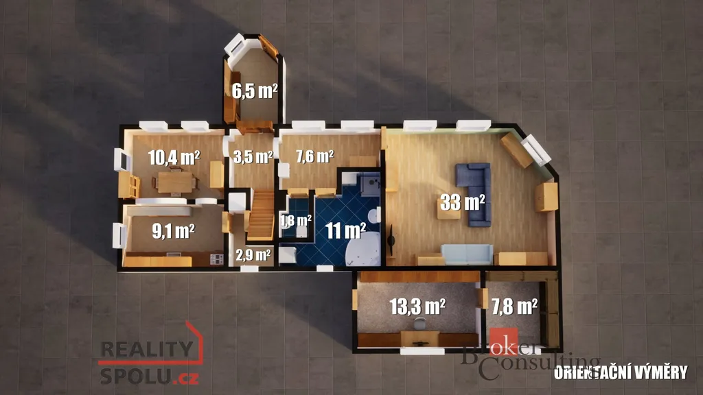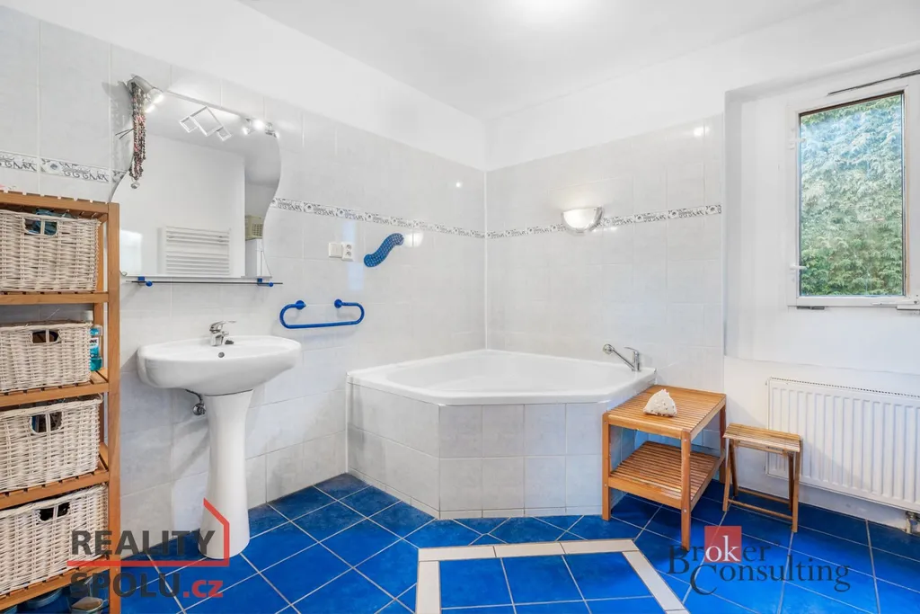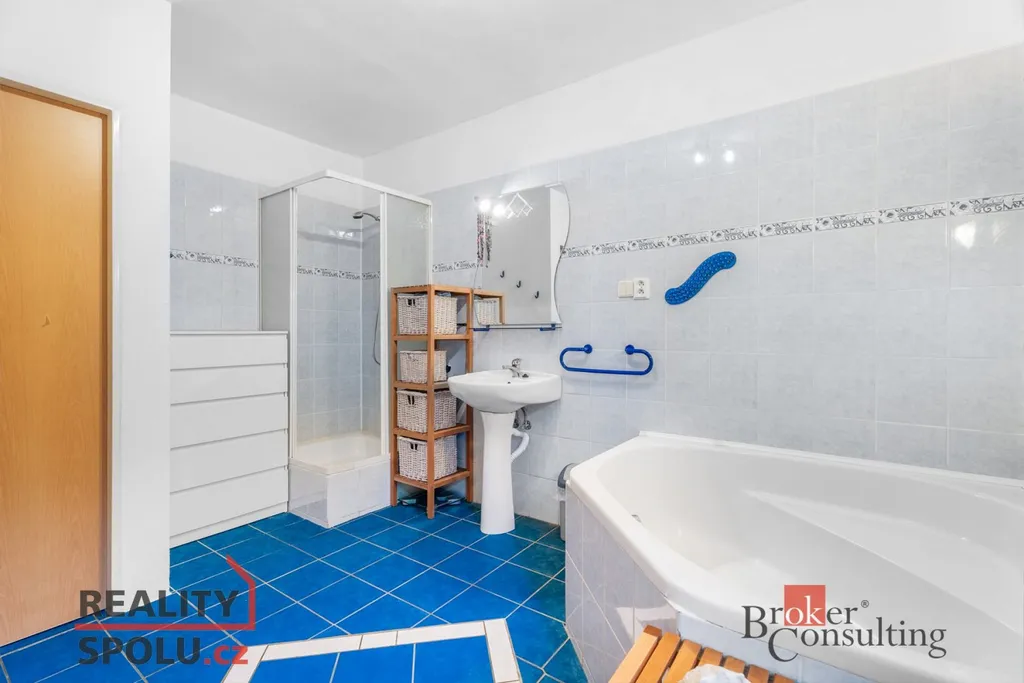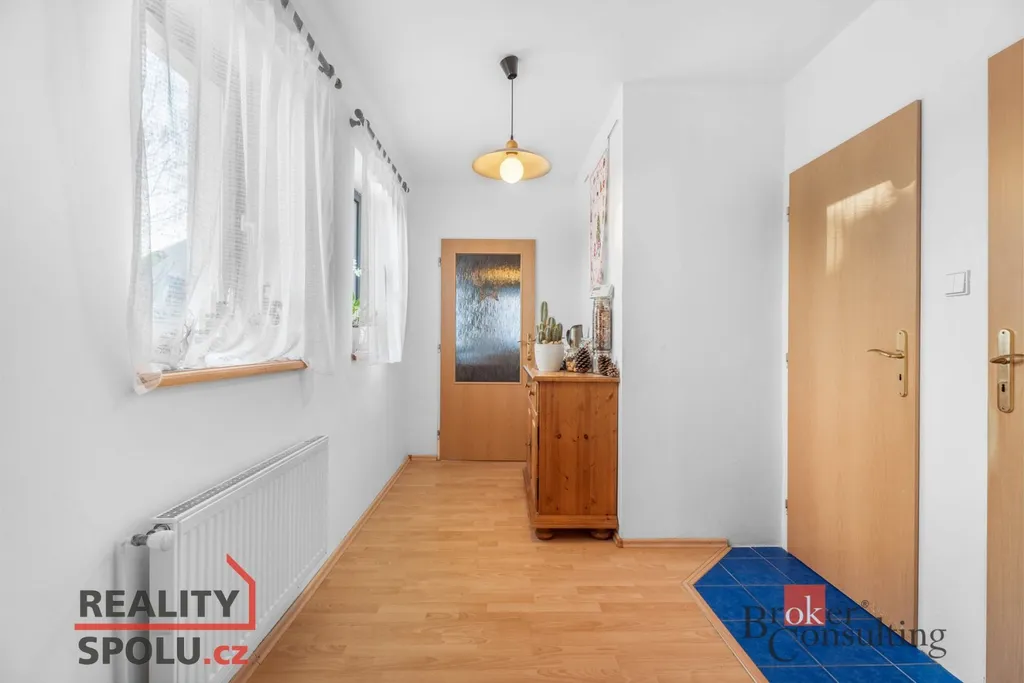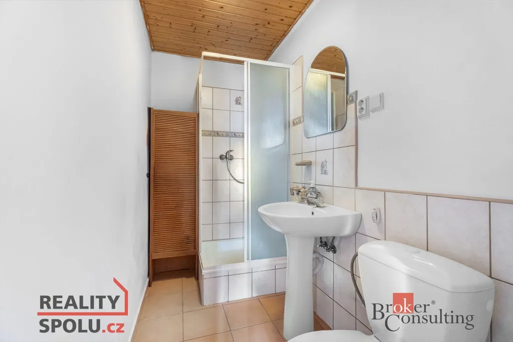 V přízemí se nachází prostorný a světlý obývací pokoj, který tvoří srdce celého domu. Dále se zde nachází kuchyň s jídelnou a spíží, koupelna s vanou i sprchovým koutem a oddělené WC. V patře je umístěna ložnice se samostatnou koupelnou, což zajišťuje maximální komfort a soukromí. K dispozici tu jsou ještě 2 samostatné pokoje. Dům je podsklepen.