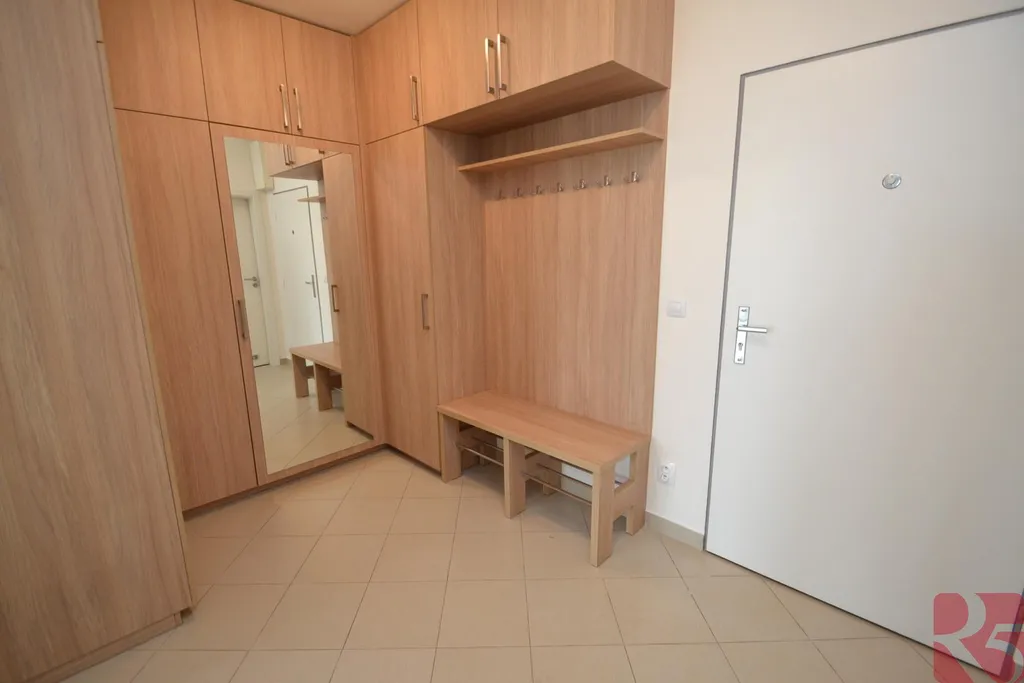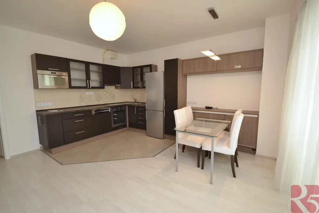 Jedinečný byt v novostavbě u metra Letňany se pronajímá s na míru vyrobeným nábytkem, skříněmi, kuchyní s vestavěnými spotřebiči.