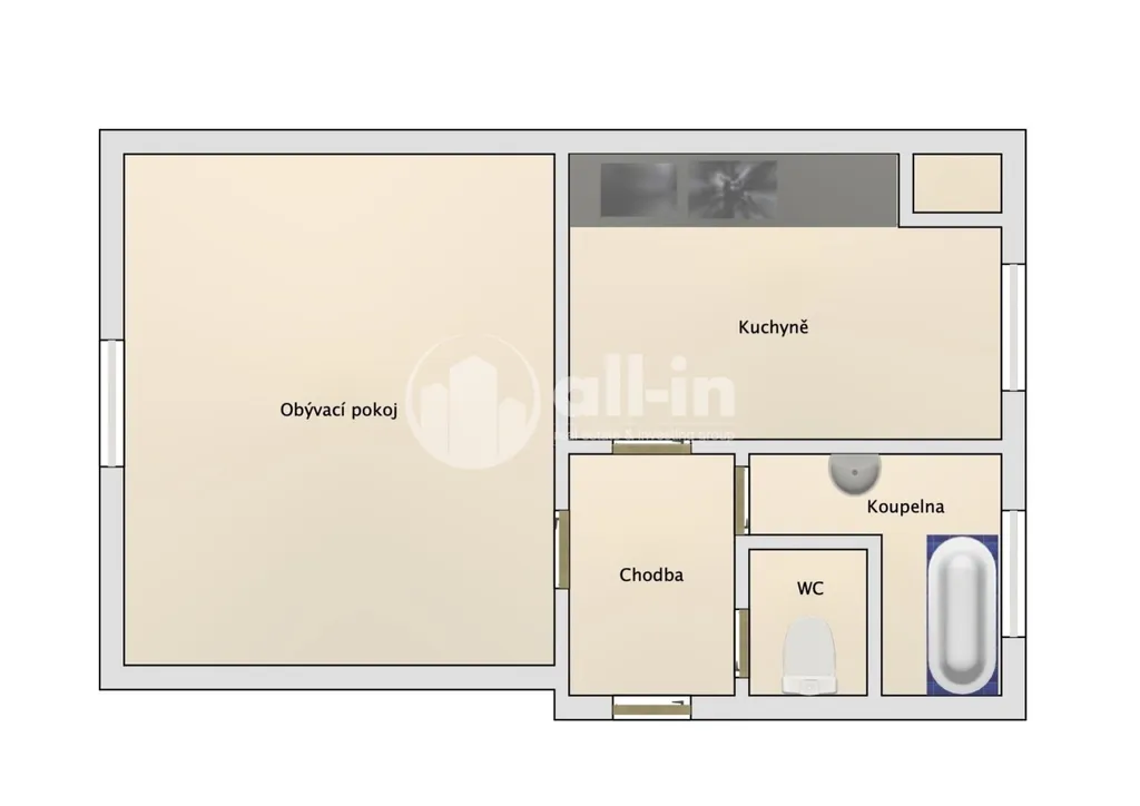 Byt je vybaven kuchyňskou linkou a plynovým sporákem.