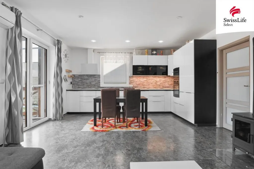 Dům je rozdělen na dvě bytové jednotky. Nabízená jednotka má dispozici 4+kk a podlahovou plochu 94,5 m2 + terasu 18,8 m.
