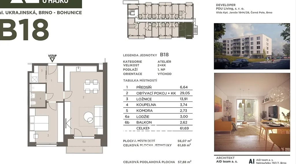 Jednotka: B18 • Podlaží: 1. NP • Orientace: východ