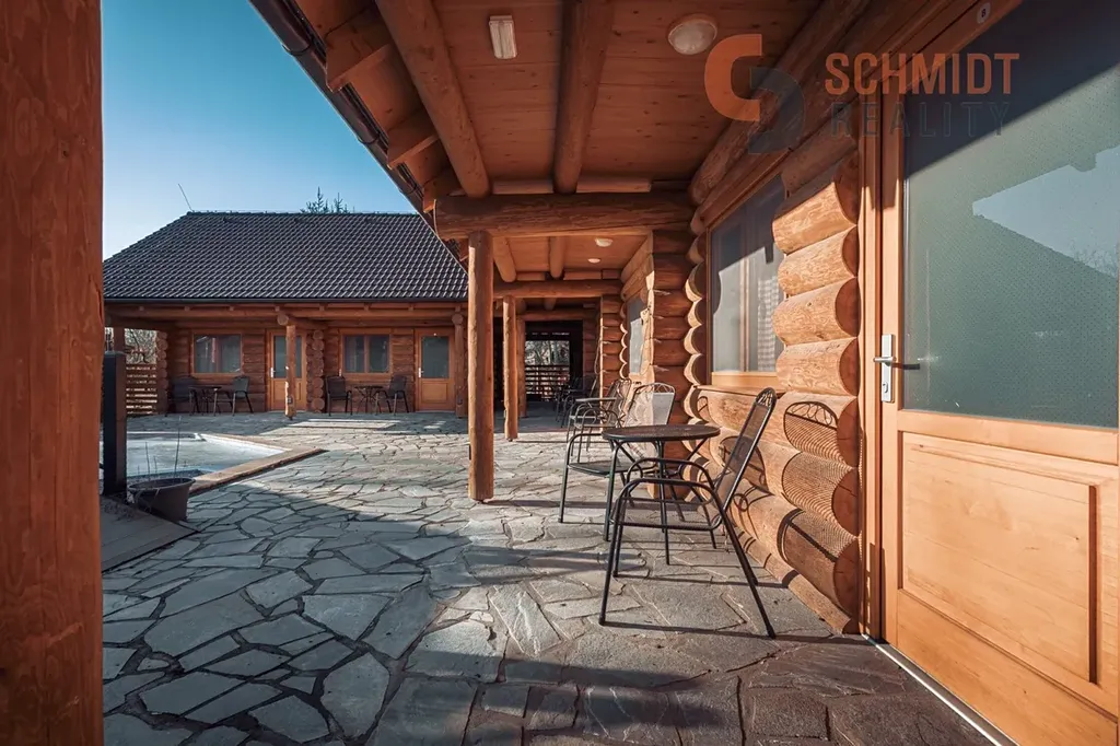 Areál nabízí parkování pro cca 20 vozidel, venkovní bazén s pergolou, kolárnu a samostatný menší domek pro přípradné ubytování personálu. Díky dispozici a poloze je objekt vhodný pro celoroční provoz, pořádání svateb, firemních akcí či jiných společenských událostí.