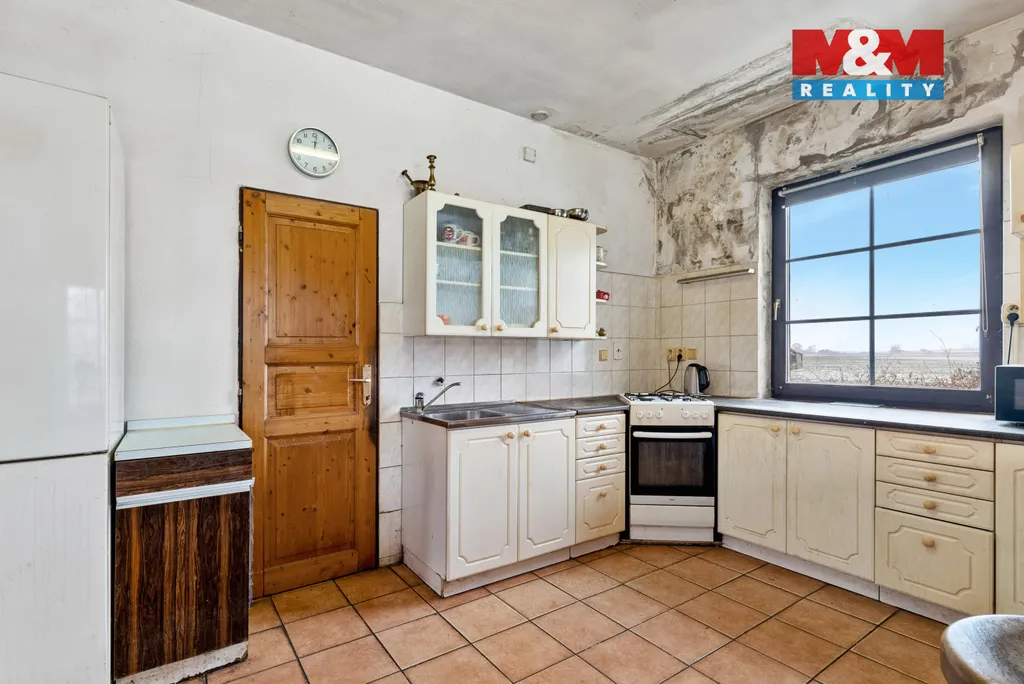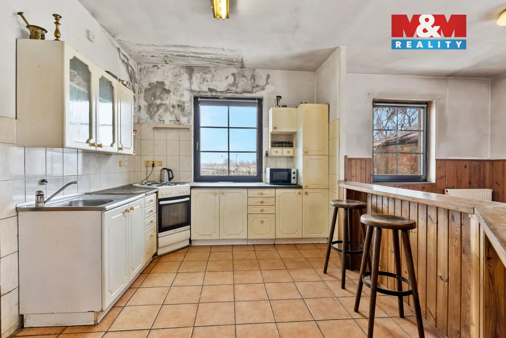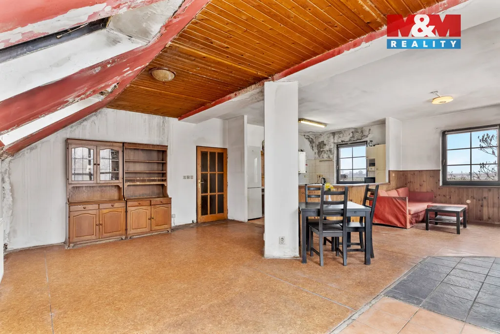 Technický stav nemovitosti vyžaduje řešení – střešní krytina je poškozená a dochází k dlouhodobému zatékání do objektu, je nutné připojení na veřejnou kanalizaci a částečná oprava elektroinstalace.