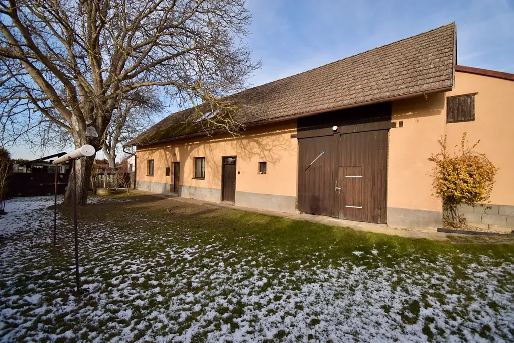 K domu náleží další užitné prostory přístupné z venku – 2 místnosti sloužící jako úložné, dále stodola s podkrovím navazující na dům, a také suché wc (tato část o přibližné výměře je 78 m2).