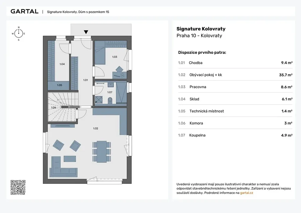 Toužíte po domě, kde jen zavřete dveře a hned ucítíte, že tady jste doma? Máme pro vás nabídku, které vám do detailu splní sen o vlastním bydlení. Nabízíme k prodeji moderní rodinný dům se zahradou o dispozici 5+kk (SK8) o celkové ploše 145 m2 v klidné lokalitě Prahy 10 na vlastním pozemku o výměře 378 m2. První, co si na svém novém domovu zamilujete, je prostor. Je ho tu tolik. Domy jsou promyšlené do posledního metru čtverečního a s dostatkem úložných řešení. Obývací pokoj je spojený s kuchyní, v ložnici na vás čeká soukromá šatna, kde si každé ráno v klidu vyberete outfit, ve kterém se budete cítit skvěle celý den, a děti půjdete postupně budit do dvou velkých samostatných pokojů. Pokud pracujete z domova určitě oceníte také útulnou pracovnu.