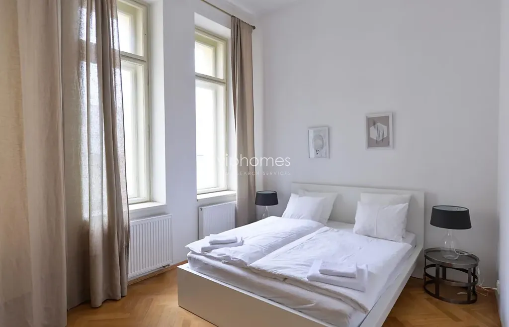 Rekonstrukce bytu i budovy s použitím kvalitních materiálů. Vysoké stropy, štuky, na podlahách parkety a dlažba, vestavěné úložné prostory, automatický regulátor topení, digitální SAT, telefonní linka, Intercom. Návazné služby spojené s pronájmem: možnost zajištění pravidelného úklidu.