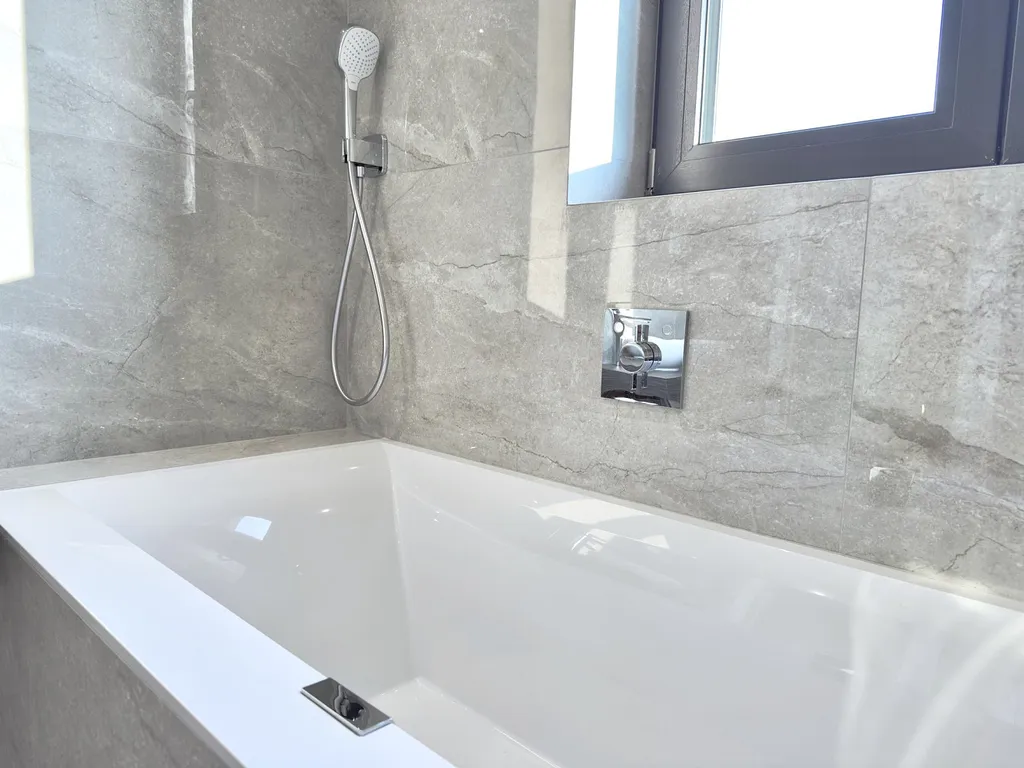Byt nabízí vysoce nadstandardní provedení – dřevěná hybridní podlaha, velkoformátové obklady a dlažby v koupelně a na WC, bezfalcové dveře, sanita Villeroy & Boch, baterie Hansgrohe a kompletní elektroinstalace vč. dotykových vypínačů, zabezpečovacího a kamerového systému.