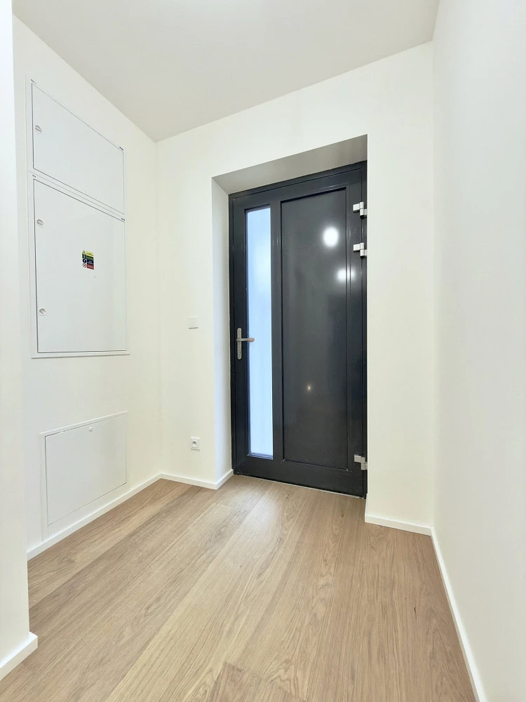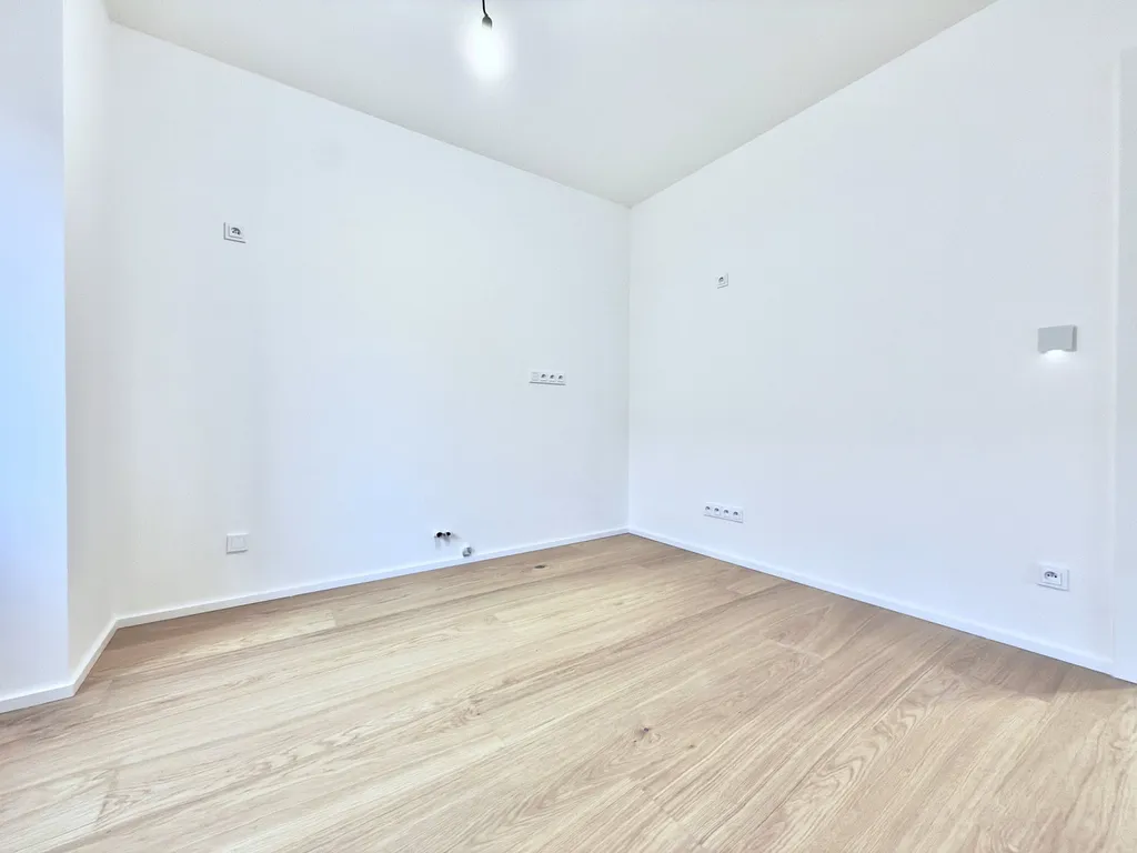 Byt nabízí vysoce nadstandardní provedení – dřevěná hybridní podlaha, velkoformátové obklady a dlažby v koupelně a na WC, bezfalcové dveře, sanita Villeroy & Boch, baterie Hansgrohe a kompletní elektroinstalace vč. dotykových vypínačů, zabezpečovacího a kamerového systému.