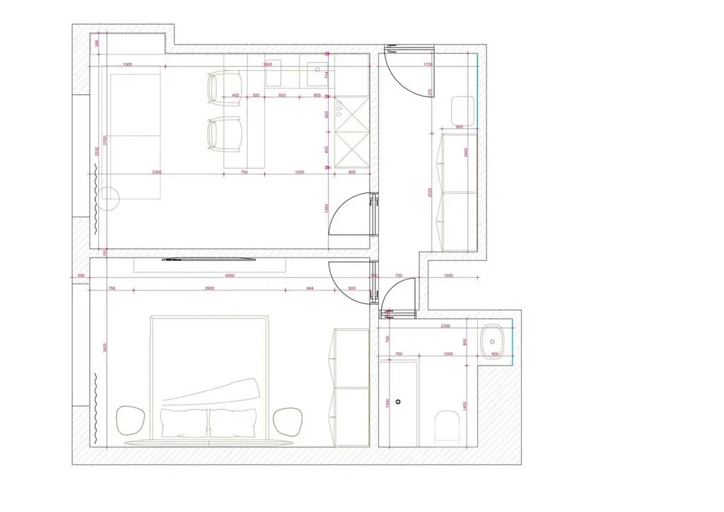 Koupelna je vybavena sprchovým koutem, umyvadlem a toaletou. V bytě se nachází také praktické vestavěné úložné prvky. Celková dispozice působí svěže, funkčně a nabízí dostatek pohodlí pro jednotlivce i pár.