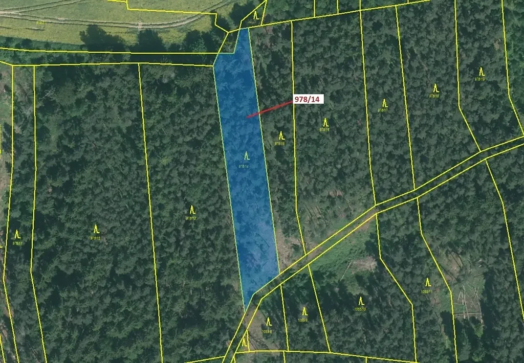 Lesní pozemek o výměře 2762 m2, parcelní číslo 978/14, podíl 1/1, katastrální území Radonice u Milavčí, obec Milavče, obec s rozšířenou působností Domažlice, okres Domažlice, Plzeňský kraj. Po těžbě.