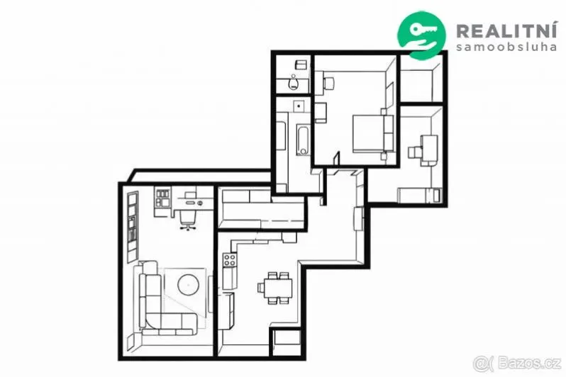 Byt je umístěn v 1. nadzemním podlaží bytového domu a disponuje velmi praktickým uspořádáním tři samostatné pokoje, kuchyň, koupelna a oddělené WC, což zajišťuje dostatek soukromí i pohodlí pro rodinu. Součástí bytu je také samostatná šatna, technická místnost využívaná jako sušárna a praktická spíž, které výrazně zvyšují komfort bydlení a poskytují nadstandardní množství úložného prostoru.