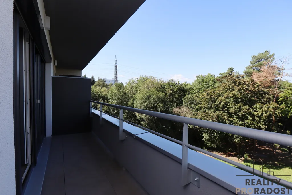 Moderní kuchyňská linka je vybavena elektrickou troubou, varnou deskou, lednicí s mrazákem, myčkou a mikrovlnkou. Kuchyně poskytuje dostatek úložného a pracovního prostoru. Z pokoje se vchází na balkon, který je orientovaný na severozápadní stranu, do zeleně. Velká okna v bytě poskytují dostatek světla a hezký výhled do otevřeného prostoru. Podlahy jsou vinylové, v bytě je podlahové topení. Na oknech jsou předokení žaluzije na dálkové ovládání.