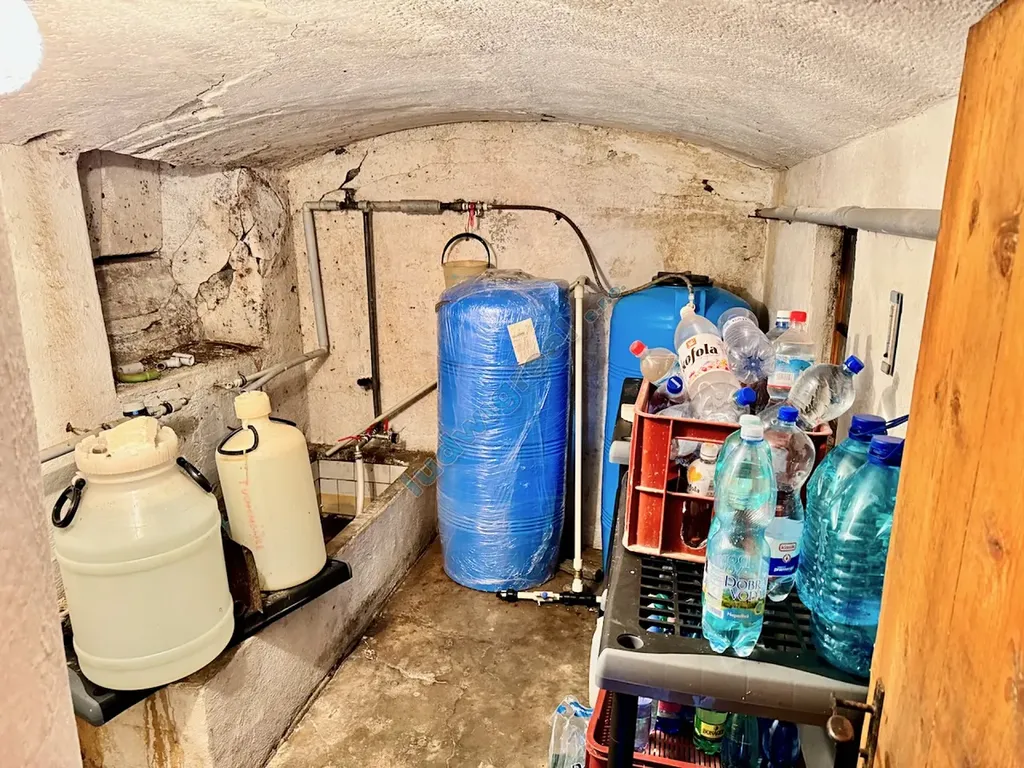 • Přízemí: centrální chodba, kuchyně s kachlovými kamny (vyžadují odborný servis), dva pokoje, vodárna, spíž, sklad, přístěnek se suchou toaletou, garáž
