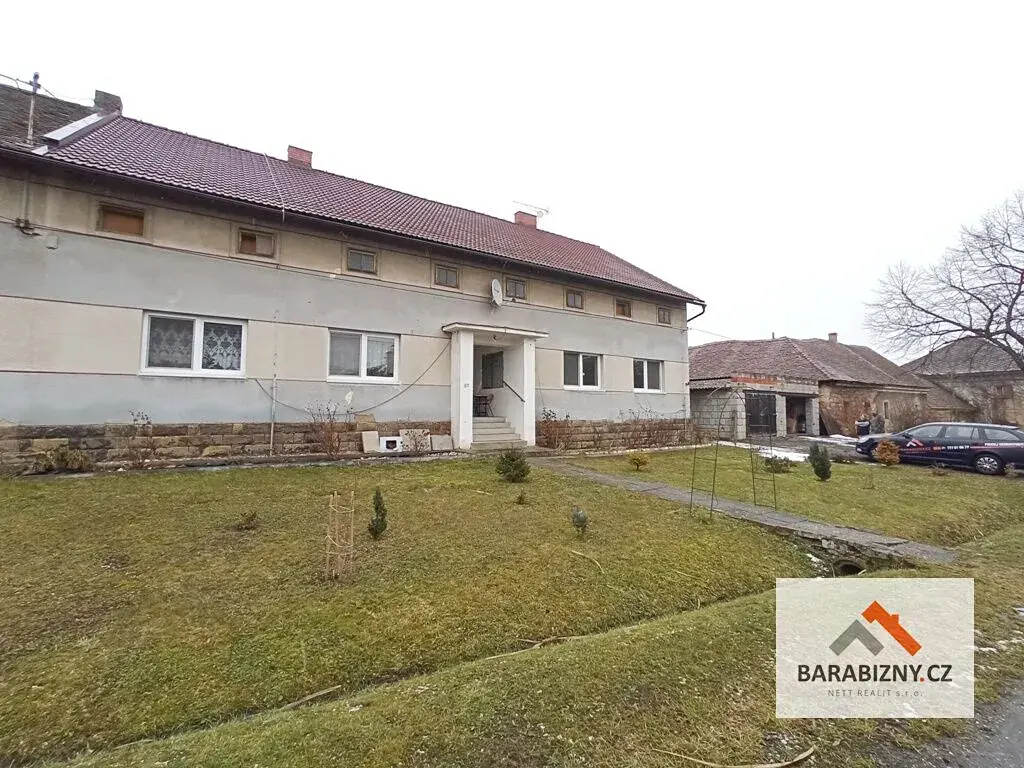 Prodej rodinného domu se dvěma byty 3+kk v přízemí a vlastním pozemkem o výměře 945m2 včetně zastavěné plochy domu 230m2, nacházející se v obci Psinice, na trase Mladá Boleslav – Jičín. Dům prošel částečnou rekonstrukcí: nová střešní krytina Bramac; částečně nová plastová okna; částečně nové rozvody vody, odpadů a elektřiny; částečně snížené stropy – sádrokarton. Na zahradě se nachází skleník, kurník, 2x dílna, zděná kolna (slouží jako dřevník) a dvě garáže o výměře 59m2. Dům napojený na veřejný vodovod, el.energii 230/400V (noční proud), odpady svedeny do septiku s trativodem (kanalizace v obci v plánu). Byt 3+kk o přibližné výměře 100m2 je vytápěn lokálně krbovými kamny (k nastěhování bez nutnosti dalších investic), s dispozicí: chodba, 2x komora, koupelna s WC, obytná kuchyně, obývací pokoj, ložnice. Byt 3+kk o přibližné výměře 80m2 vytápěn krbovými kamny s výměníkem (určen k rekonstrukci), s dispozicí: chodba, komora, WC, koupelna, obytná kuchyně, 2x pokoj. Dům má velmi prostornou půdu, vhodnou pro vestavbu několika dalších bytů. Zajímavá nemovitost pro investiční účely. Doporučujeme prohlídku. PENB G.