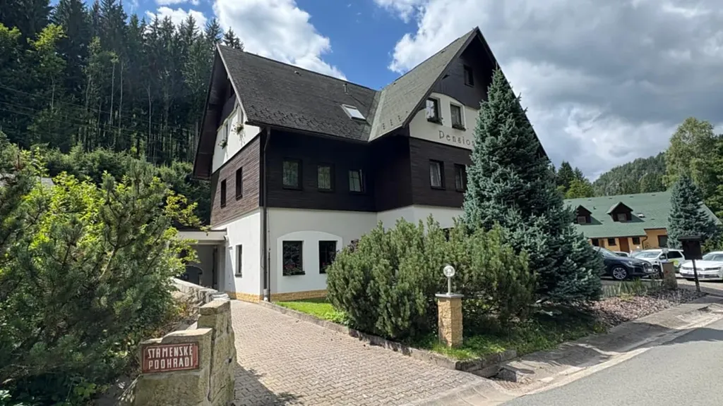 Exkluzivně Vám nabízíme k prodeji zavedený rodinný "pension SKÁLY" o užitné ploše 753m², který se nachází cca 300 m od brány Teplicko-Adršpašských skal. Tato lokalita je velmi vyhledávaná a hojně navštěvovaná v Královehradeckém kraji. Pension nabízí možnost pro skupinové či individuální rekreace, ale také i pro konání svateb, rodinných oslav nebo firemních akcí. V současné době je provozován a udržován k celoročnímu ubytování. K nemovitosti náleží parkoviště a terasovitý pozemek o výměře 2150 m², který skýtá prostor pro možný rozvoj dalších rekreačních služeb (wellness, bazén, sauny). Ubytovací kapacita pensionu v současné době je 36 míst a prodává se včetně veškerého vybavení.