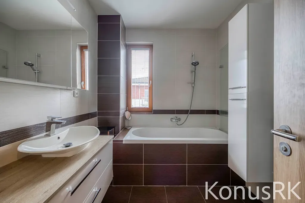 Dům nabízí čtyři další pokoje využitelné jako ložnice, dětské pokoje či pracovny, dále koupelnu s vanou a sprchovým koutem, samostatné WC, technickou místnost a dostatek úložného prostoru. Garáž pro jeden vůz je součástí objektu, další parkování je možné na pozemku.